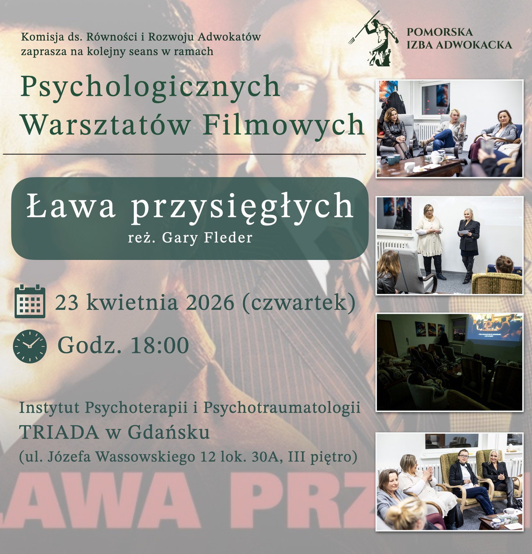 W imieniu Komisji ds. Równości i Rozwoju Adwokatów zapraszamy na kolejne spotkanie w ramach Psychologicznych Warsztatów Filmowych dla Adwokatów i Aplikantów.