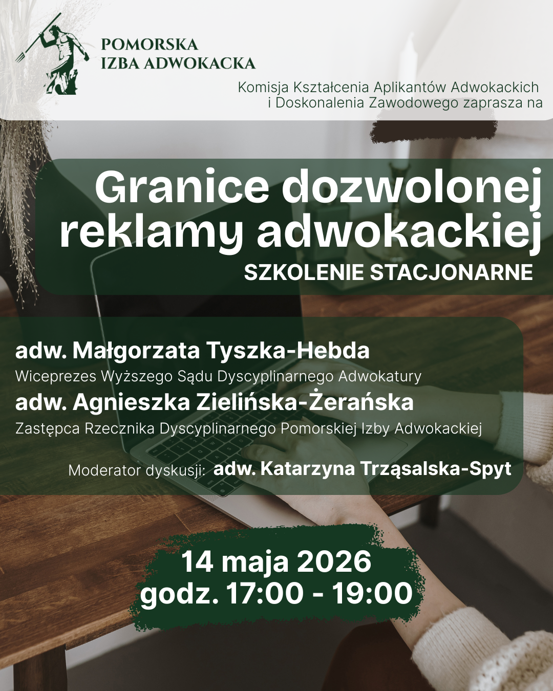 Komisja Kształcenia Aplikantów Adwokackich i Doskonalenia Zawodowego PIA zaprasza na wykład stacjonarny/dyskuję na temat ,,Granice dozwolonej reklamy adwokackiej", który odbędzie się w dniu 14 maja 2026 r. w godz. 17:00 - 19:00.