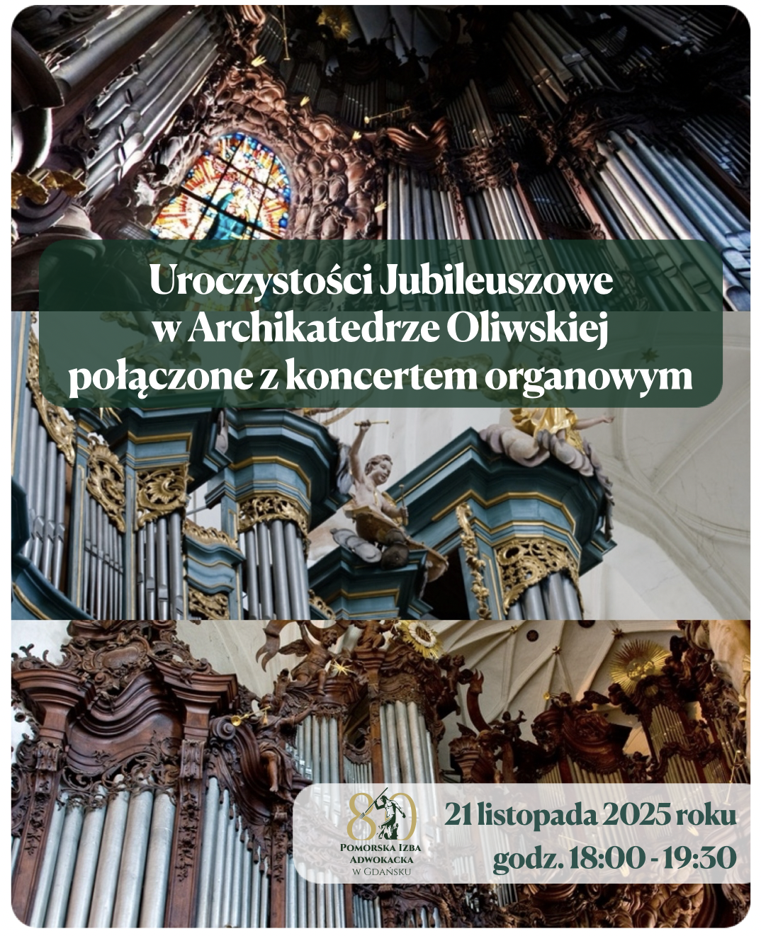 Kolejnym ważnym wydarzeniem towarzyszącym obchodom 80-lecia Pomorskiej Izby Adwokackiej będą uroczystości w Archikatedrze Oliwskiej. W wyjątkowej scenerii tej historycznej świątyni Goście wezmą udział w części oficjalnej, a następnie wysłuchają koncertu organowego.
